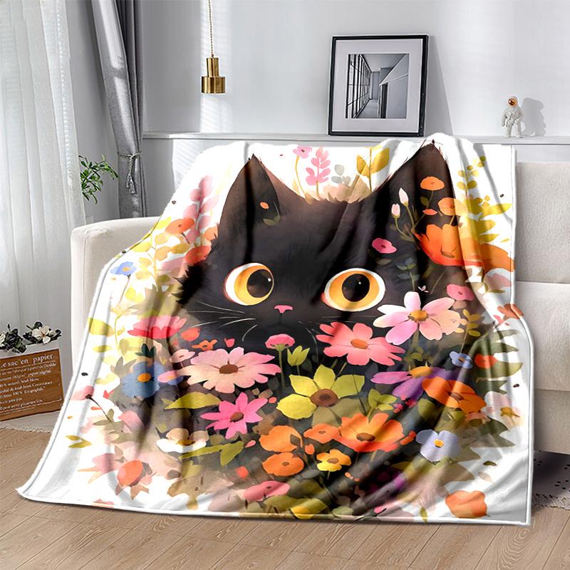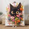 1pc Flower Black Cat Blanket Seasonal Universal Home Decorative for Room, Gift Idea, Living Room, Travel, Camping, Car Blankets