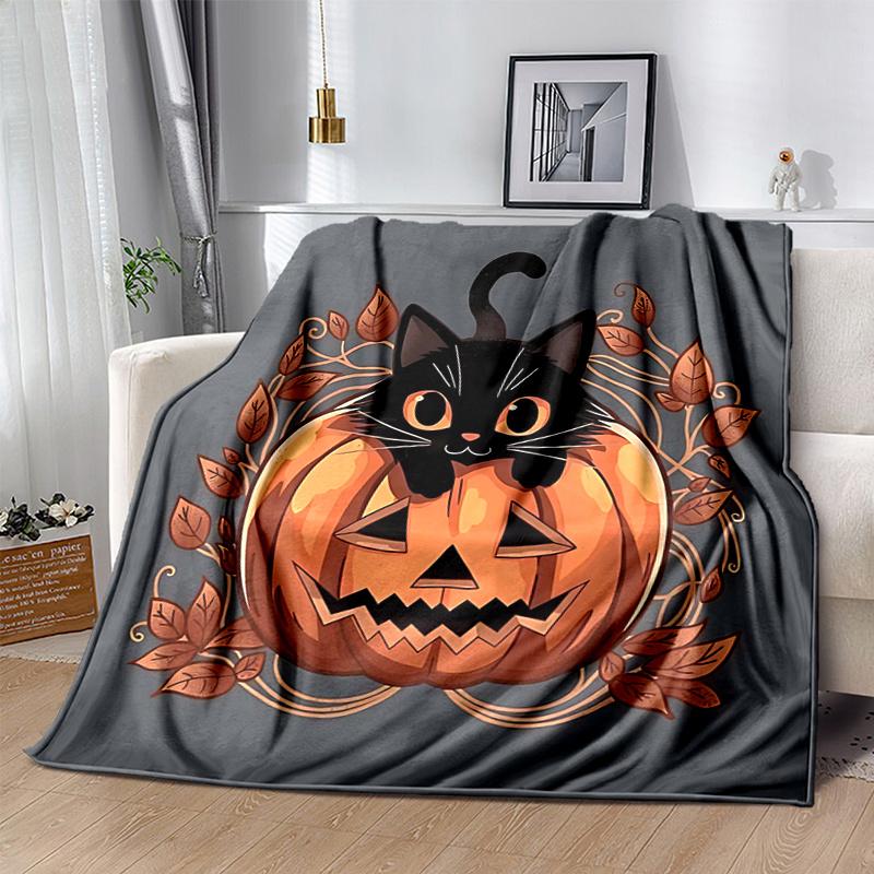 1pc Pumpkin and Flowers Cat Blanket Seasonal Home Decorative Throw for Room, Gift Idea for Friend, Living Room, Travel, Camping, Car Blankets
