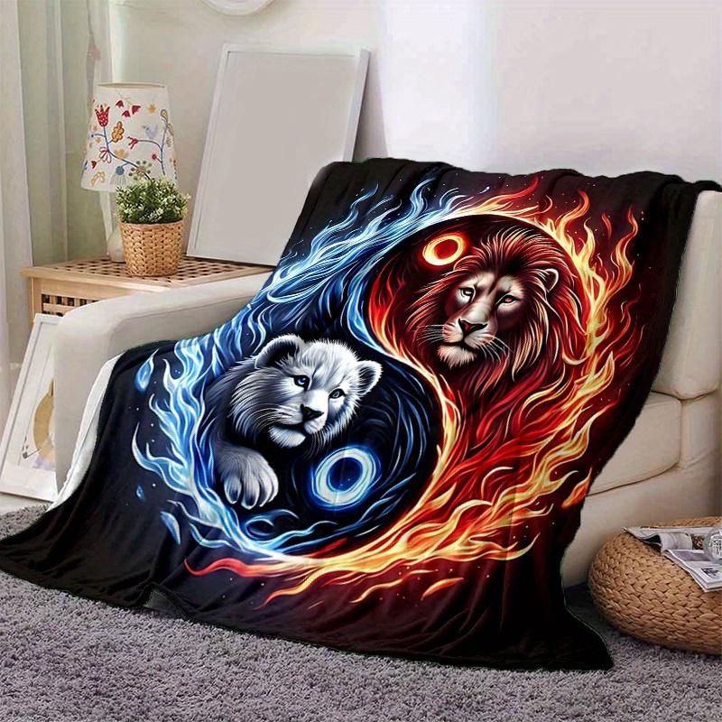 1pc Yin Yang Lions Blanket, Soft Warm Throw for Home Decor, Gift Idea, Living Room, Travel, Camping, Car Blankets