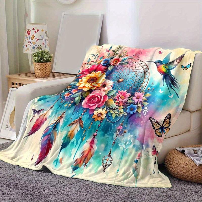 1pc Birds Flowers Butterflies and Feathers in a Fantasy Garden Soft Warm Home Decorative Blankets for Couch Bed Sofa, Living Room, Travel, Camping