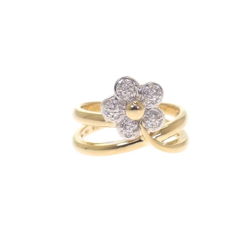 Production features:This is Ponte Vecchio's "Flower Ring." The combination of 18K yellow gold and 18K white gold beautifully accentuates the three-dimensionality and brilliance of the floral motif. The delicately set diamonds radiating from the center of the flower add a touch of glamour to your finger. The softly curved arms fit naturally to your finger, making this an elegant piece of jewelry.