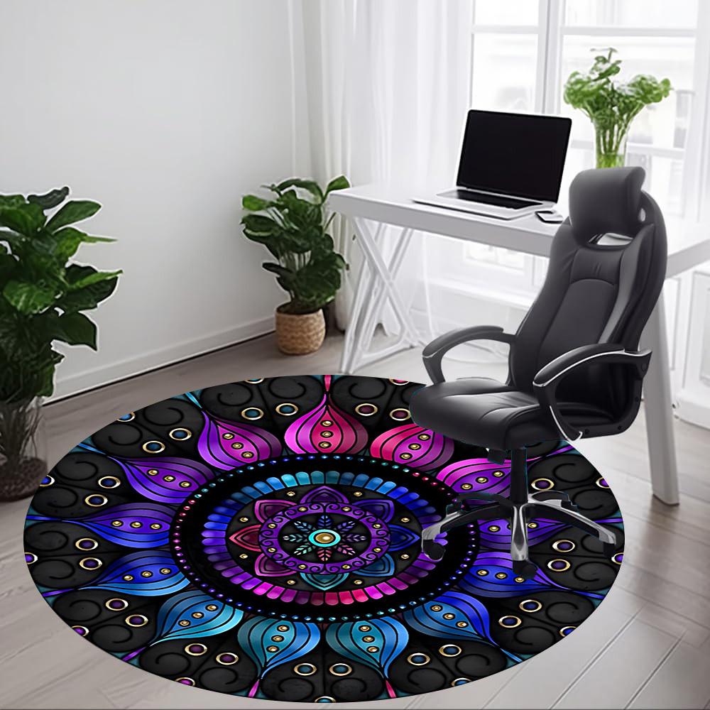 1PC Mandala Artwork Office Round Rug, Non slip, Soft and Durable Office Rug for Interior Decoration, Perfect for Office