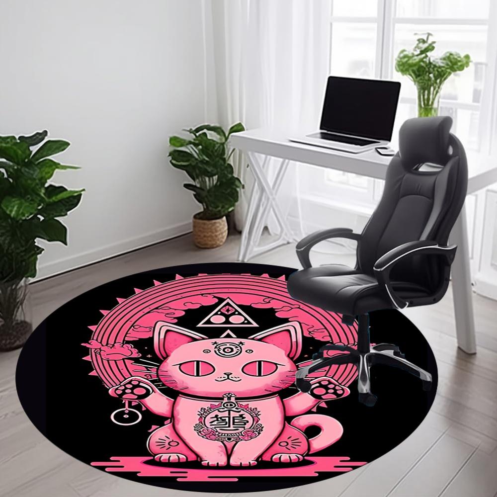 1pc Pink Cat Mandala Office Round Area Rug, Under Office Chairs Bedroom Living Room Home Decor, Room Deco