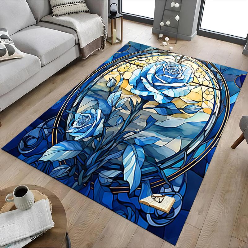 1PC Stained Glass Rose Extra Large Non Slip Floor carpet, Office, family, bedroom Large Area Rug Indoor Rugs, Vibrant Colors