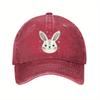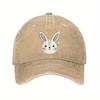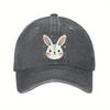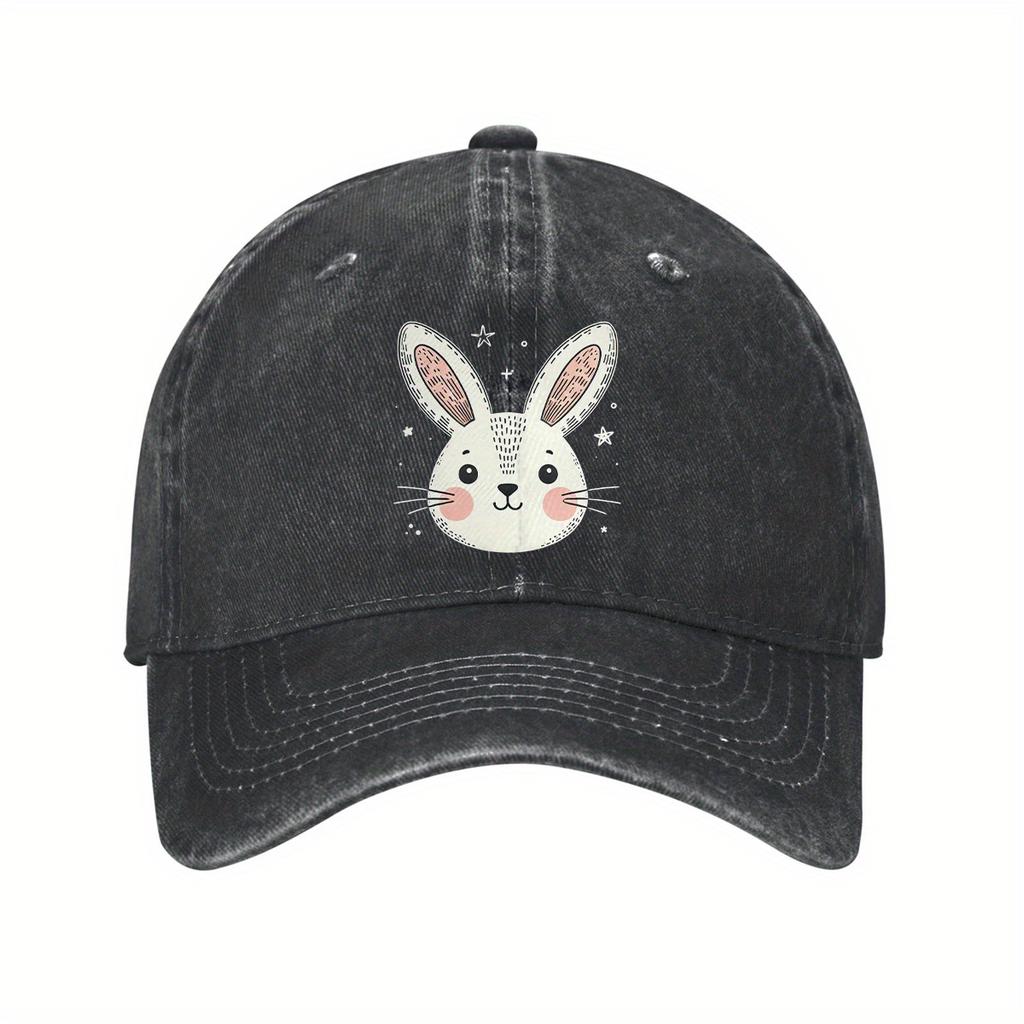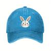 Cute Bunny Face Graphic Denim Baseball Cap Washed Casual Adjustable Cotton Dad Hat