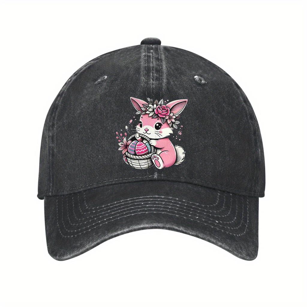 Pink Easter Bunny Egg Basket Cotton Baseball Cap Adjustable Casual Spring Outdoor Cap