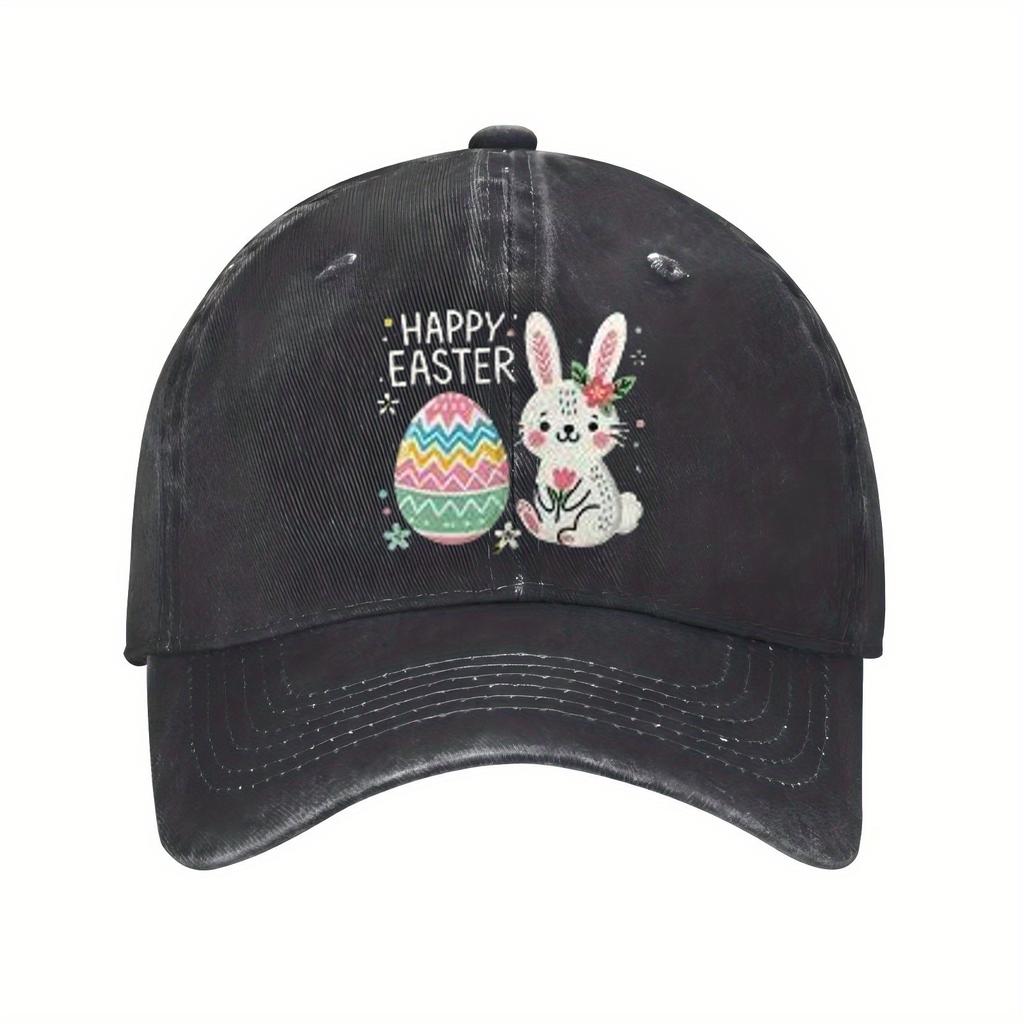 Happy Easter Bunny Egg Baseball Cap Unisex Polyester Casual Print Sun Protection Adjustable Festival Hat