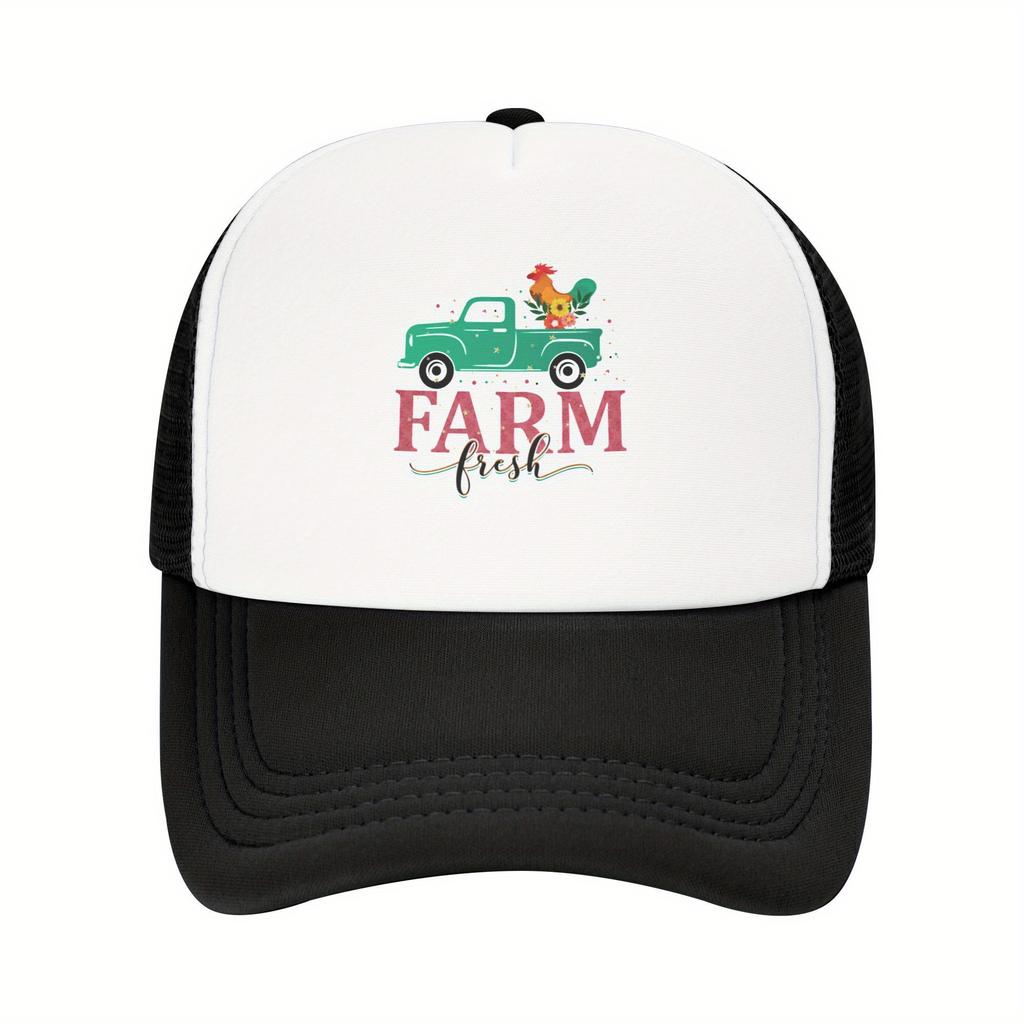Farm Fresh Truck Rooster Graphic Trucker Hat Polyester Mesh Breathable Casual Unisex Cap