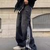 JYL Men's Black Striped Jeans Vintage Three-Stripe High-Street Loose Straight Denim