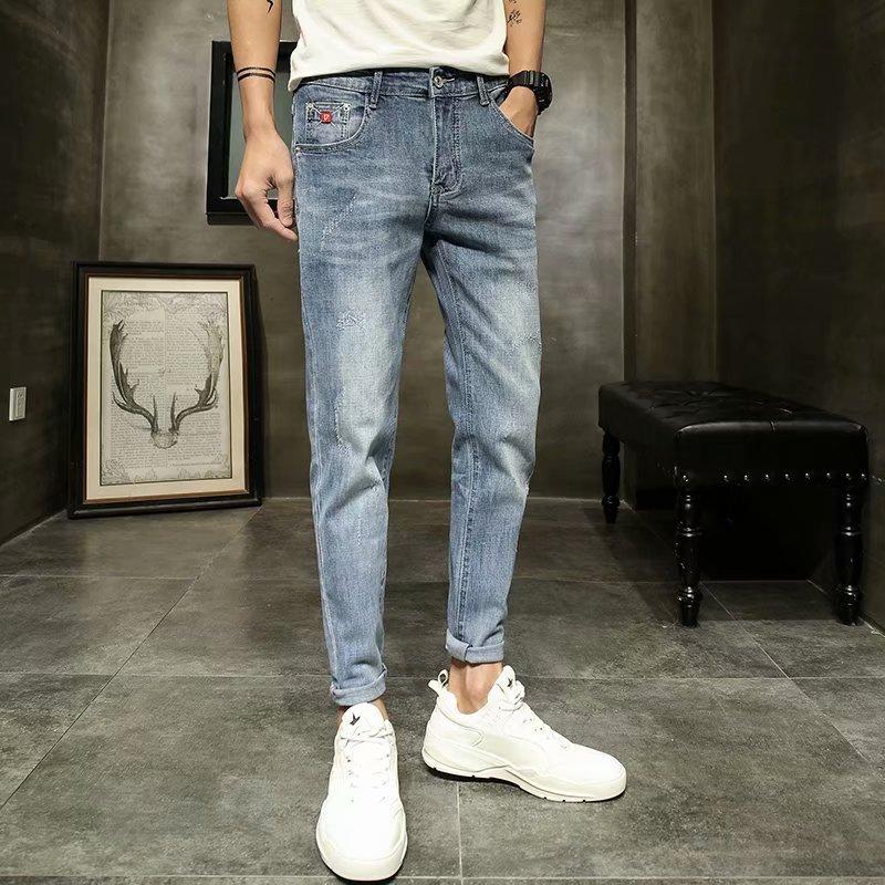 JYL Men's Cropped Jeans Summer Thin Slim Korean Trendy Versatile Denim Pants
