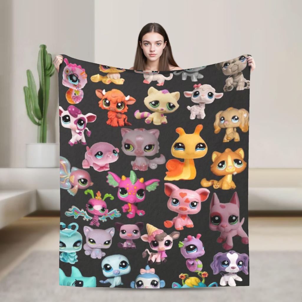 Warm Soft BlanketGirls Boys Travel Littlest Pet Shop Throw Blanket Flannel Bedspread For Couch Chair Sofa Bed Novelty