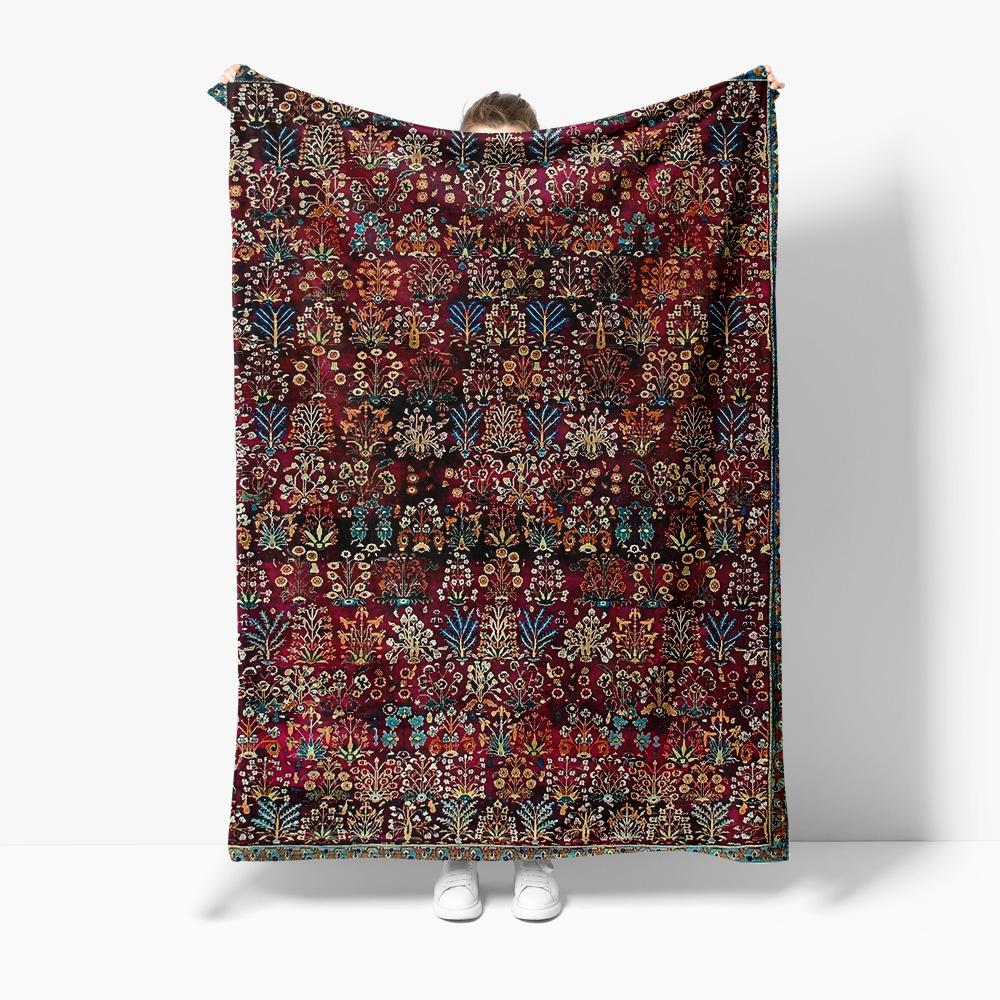 Luxurious Red Floral Embroidered Velvet Throw Blanket Turkish Kilim Style Cozy Sofa Bed Living Room Decor Gift