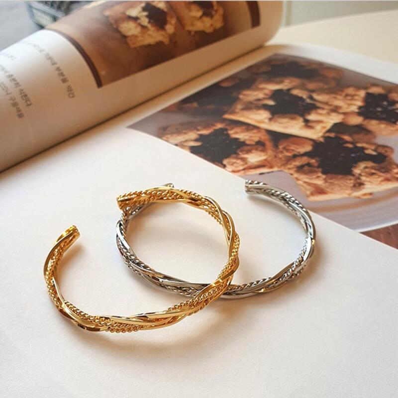 Women's Luxury Twisted Silver Open Bracelet
