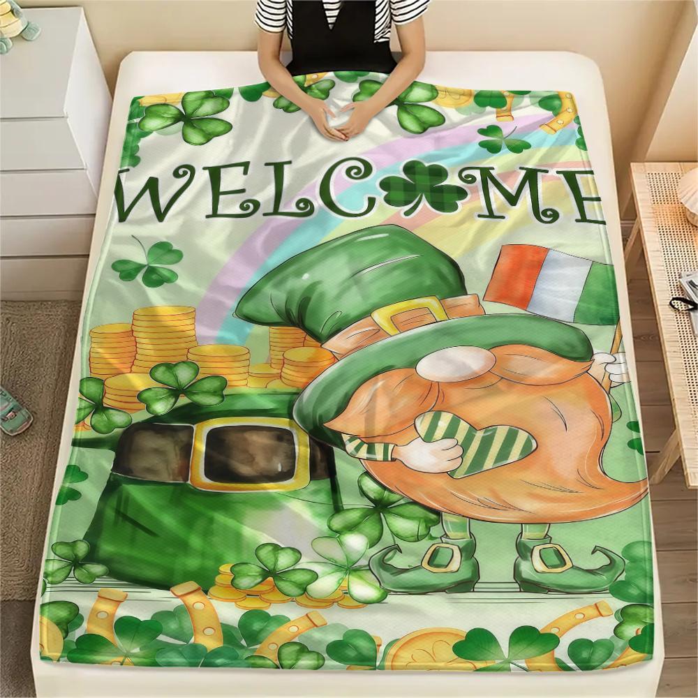 St.Patrick's Day Green clover Print Flannel Blanket,High quality Comfortable for All Seasons,Home Decor,Warmth and Comfort,Perfect for Christmas Gifts