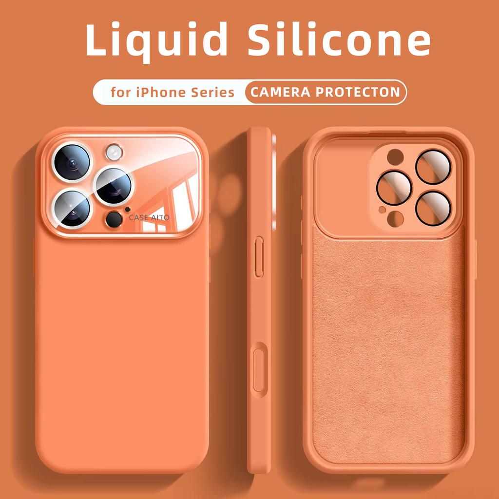 Original Liquid Silicone Phone Case For iPhone 17 16 15 14 13 Pro Max 17Pro Air Glass Large Window Camera Protection Soft Cover