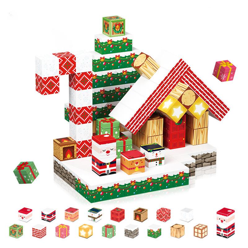 Non-Toxic Christmas Magnetic Building Block Set Cute Magnetic Cubes Construction Set Stem Montessori Sensory Toys For Kids New Year Gift