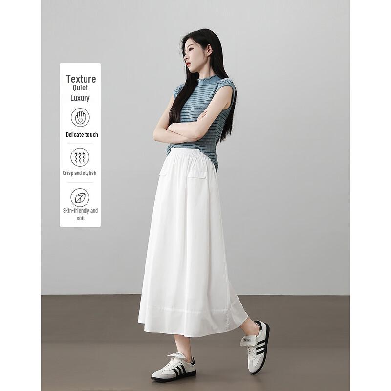 Demana 100% Cotton Summer Elegant Shirred Waist A-line Midi Skirt