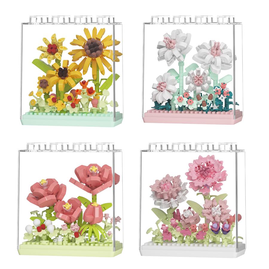 Eternal Flower DIY Builidng Blocks Plastic Flowers Blocks Girls Toys Sunflower Carnation New Year Decorations