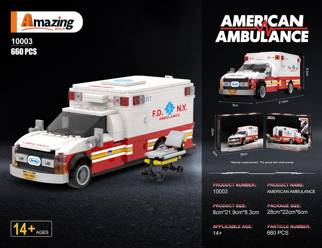 Authentic American Ambulance Design Stretcher Detail: With 660 precision-molded bricks, the set replicates a classic American-style emergency ambulance—featuring a rugged body, prominent emergency logos, openable doors, and a dedicated detachable stretcher . Every detail, from the vehicle’s contour to the stretcher’s structure, mirrors real American emergency vehicles, delivering vivid realism for kids and model enthusiasts.