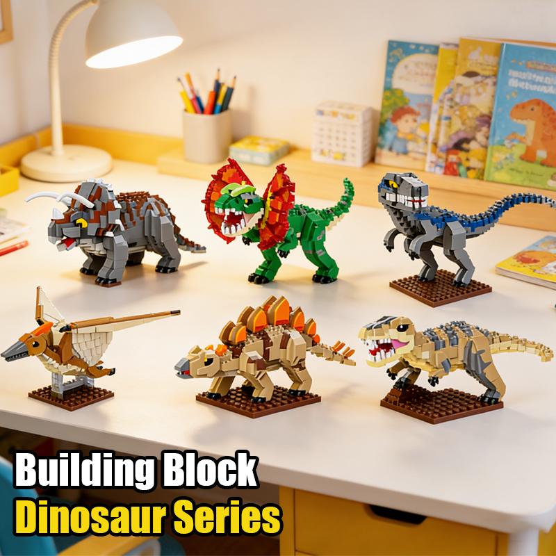 4.Dinosaur series design: Jurassic Tyrannosaurus Rex and Velociraptor models offer an exciting prehistoric gaming experience, suitable for dinosaur lovers.