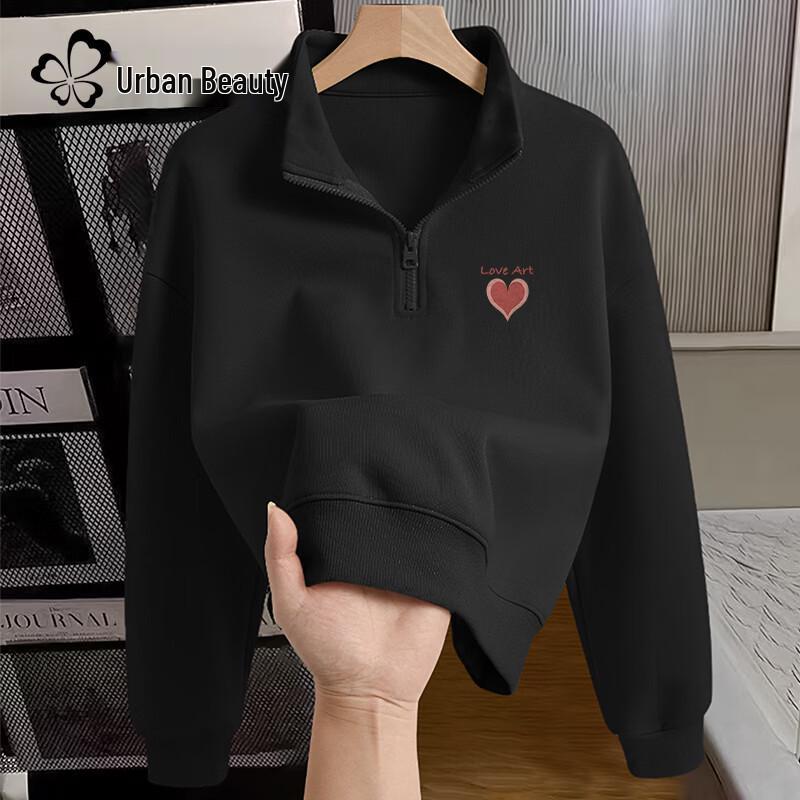 Women's Polo Collar Half-Zip Short Sweatshirt