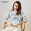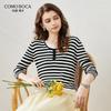 Women's Lyocell Stripe Faux Two-piece Long Sleeve Knit Top