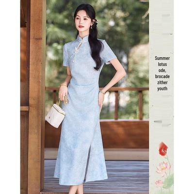 Kadınlar İçin Geliştirilmiş Cheongsam Elbise Çin Tarzı Dik Yaka İşlemeli Uzun Elbise