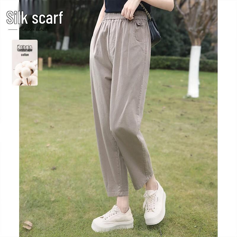 Women's High-Waist Elastic Cropped Casual Pants