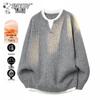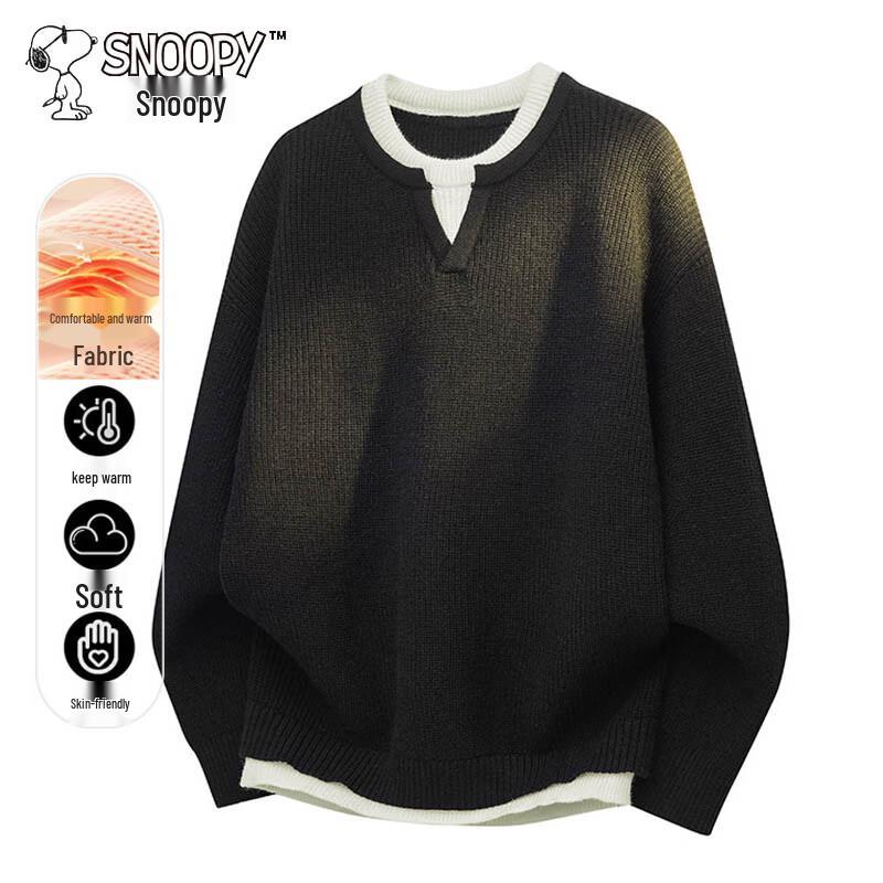 SNOOPY Men's casual loose-fit mock two-piece round neck sweater, perfect for versatile wear in spring and autumn. Made from a comfortable blend of acrylic, polyester, and nylon, this pullover is suitable for youth and middle-aged men.