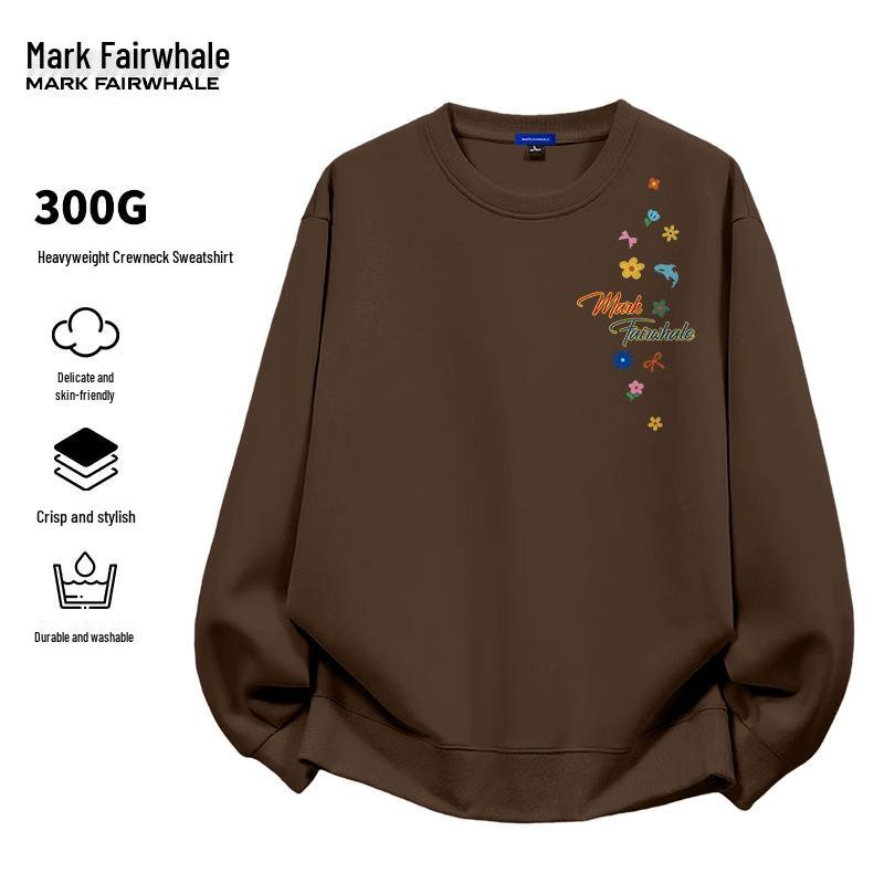 MARK FAIRWHALE Men's Retro Heavyweight Letter Print Crewneck Sweatshirt