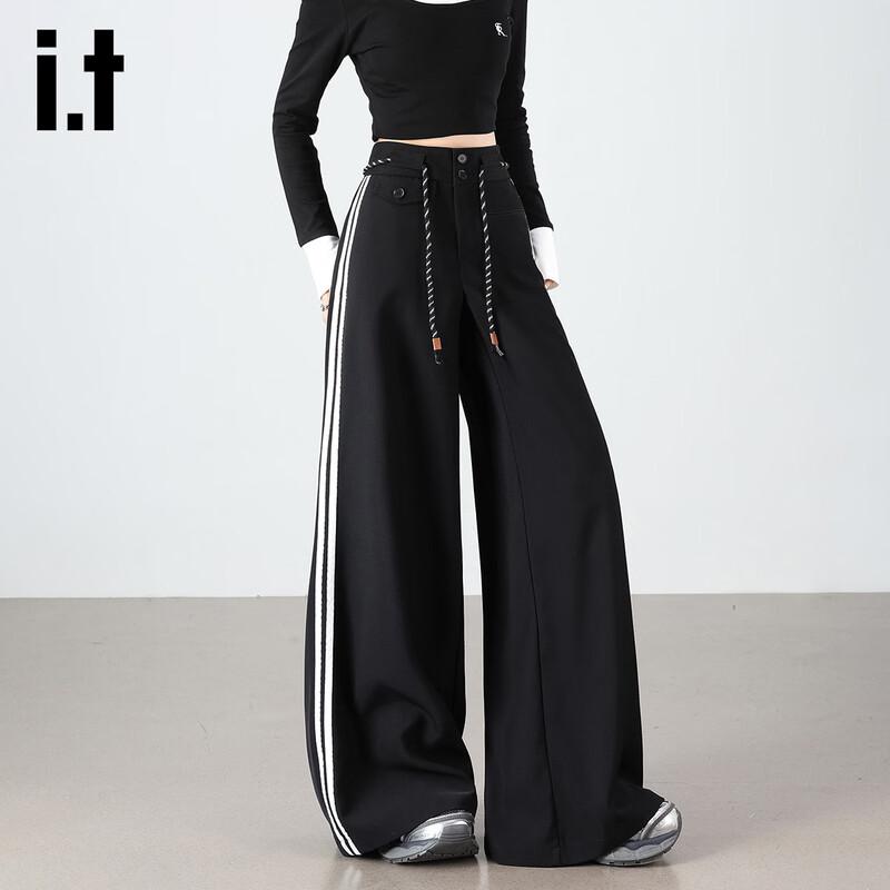 Izzue It Women's High-Waisted Wide-Leg Drawstring Casual Pants