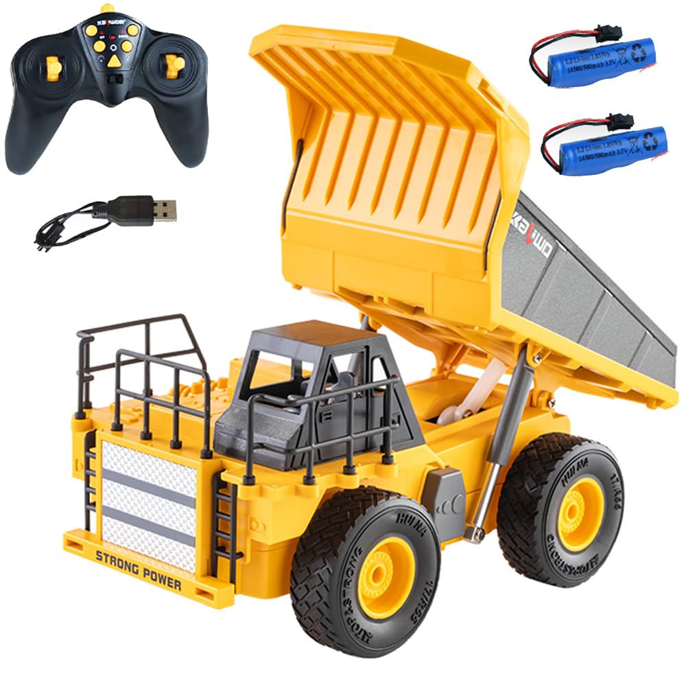 124 Scale RC Dump Truck, Engineering Vehicle, 2.4GHz, 360° Rotating LED Light, Alloy Reinforced, for Kids, Indoor Play, Birthday Gift for Boys, Gift