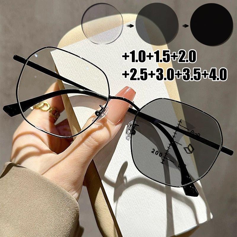 Trendy Photochromic Reading Glasses for Women Men Classic Square Frame HD Presbyopia Color Changing Progressive Multifocal Eyewear