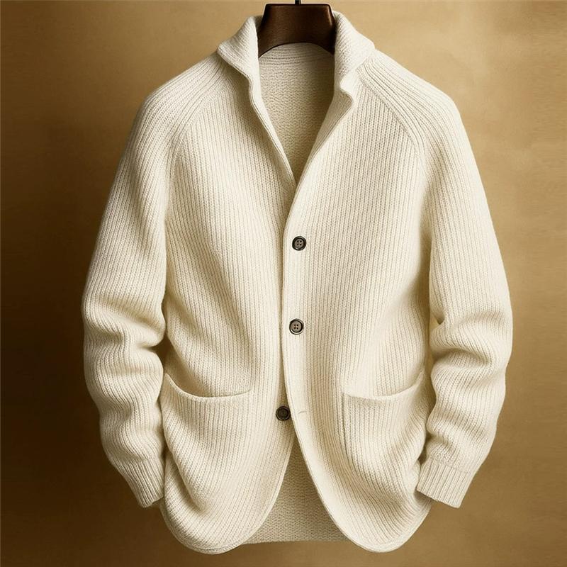 Men's Knitted Three-Button Green Fruit Collar Cardigan Sweater Spring Aautumn Knitwear Solid Color Long Sleeve Knit Outerwear