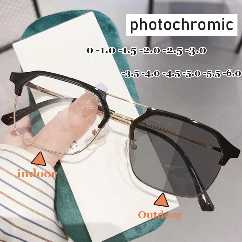 Unisex Photochromic Glasses Outdoor Color Changing Myopia Eyewear Men Women Minus Diopter To-6.0 Intelligent Lightweight