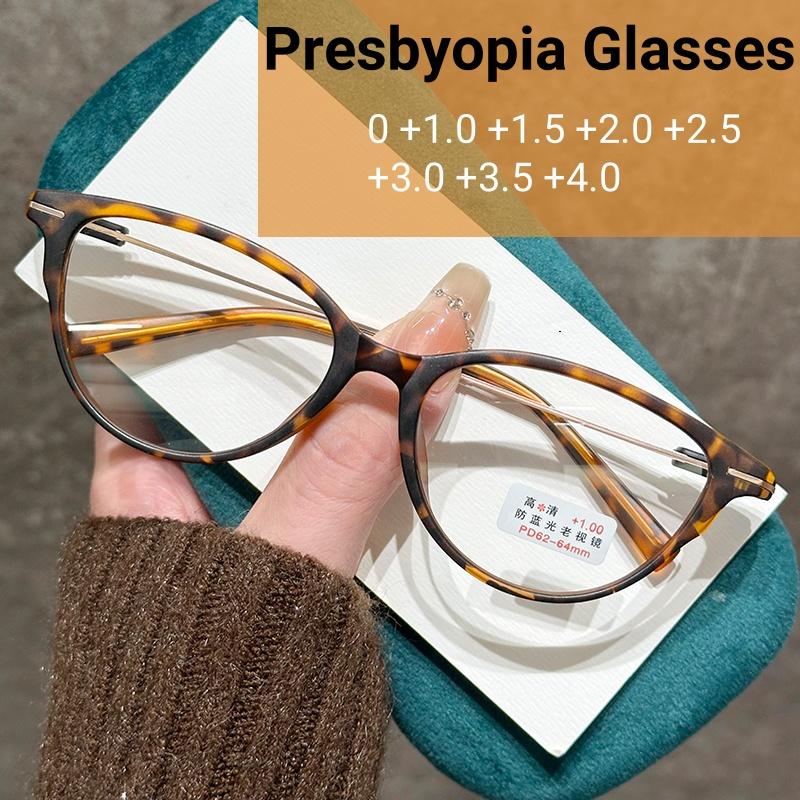 Fashionable Women Cat Eye Frosted Round Presbyopia Glasses Anti Blue Light Optical Eyeglasses 0 TO +4 0