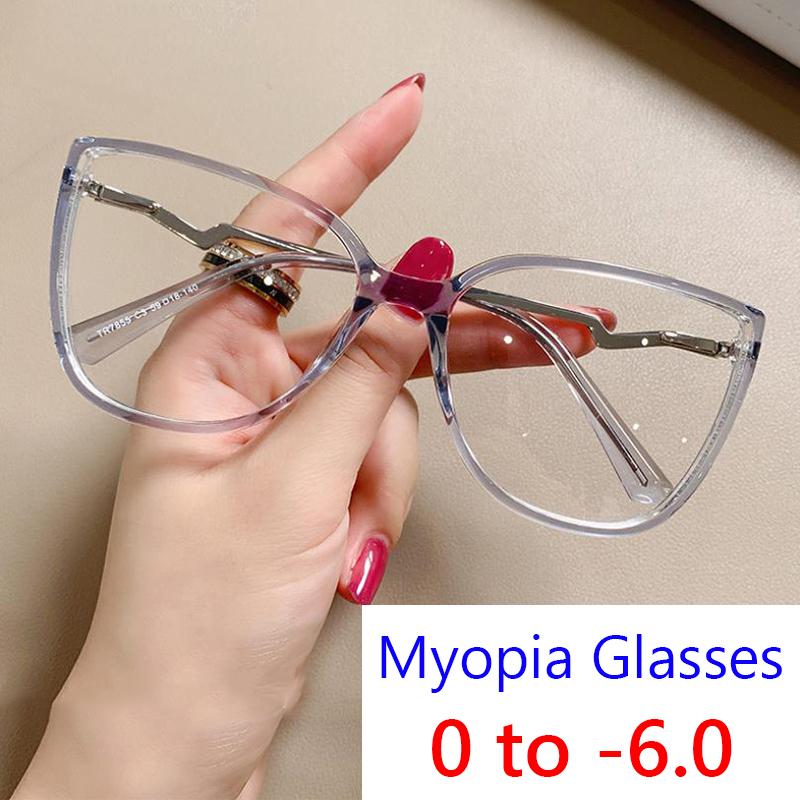 New Fashion Cat Eye Eyeglasses For Women Myopia Anti Blue Light Optical Glasses Minus 2 3 Distance
