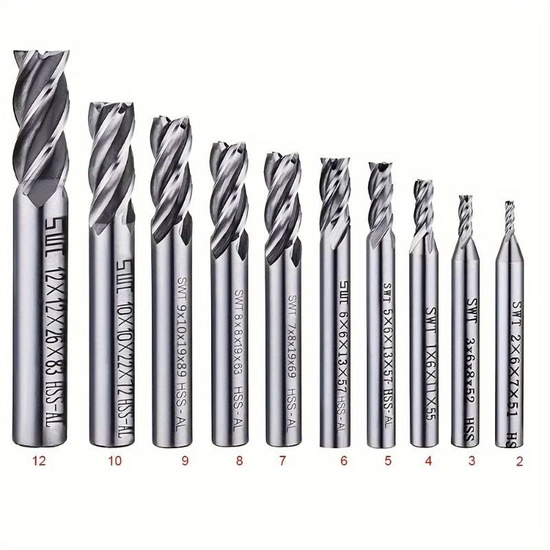 4 Flute Spiral End Mill Set 2-12mm High-Speed Steel CNC Lathe Cutter Bits Straight Shank Precision Drill Kit for Machinists