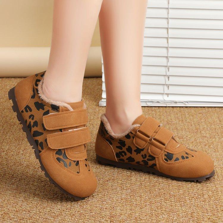 Retro leopard print German training shoes winter new thin-soled fluffy shoes sports velvet cotton shoes