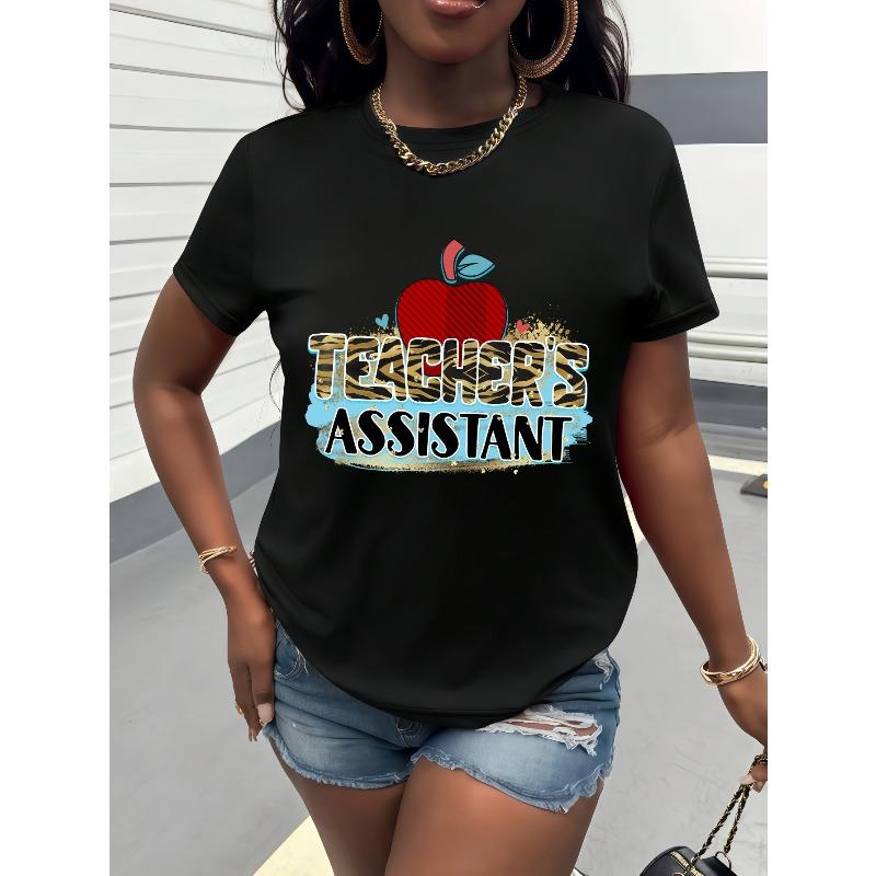 European sizes Women's Teacher Assistant Tee - Compatible for Teacher Titles (TA, IA), Casual Round Neck Short Sleeve Shirt