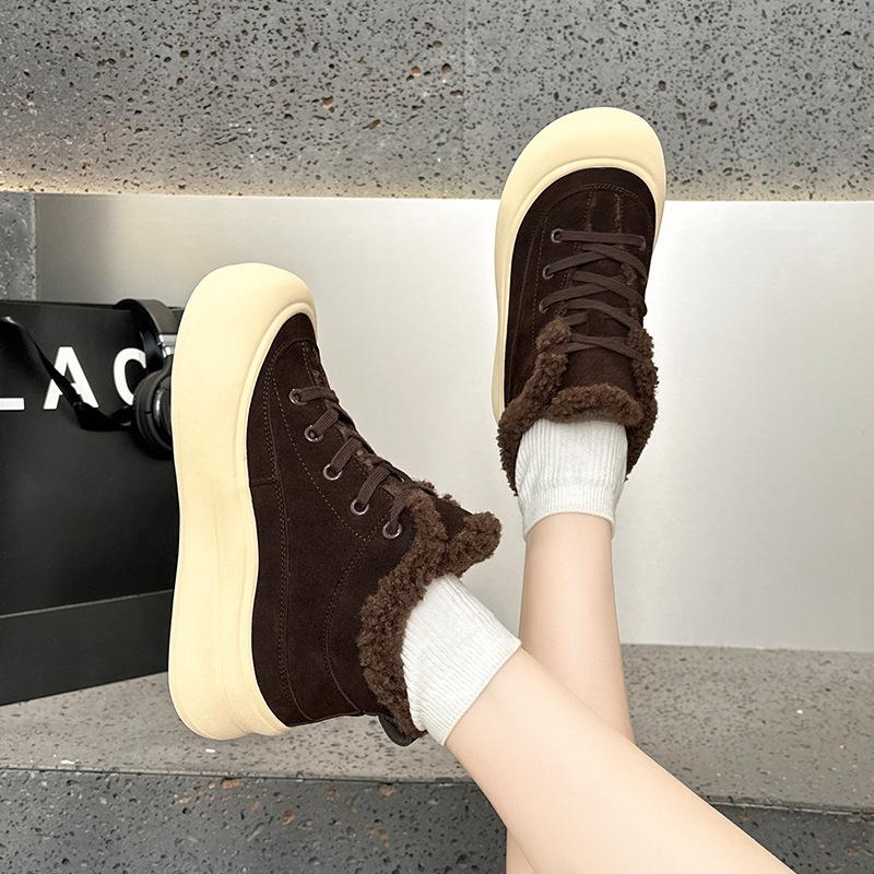 Warm board shoes winter new velvet leather fluffy mouth large cotton casual high-top cotton shoes