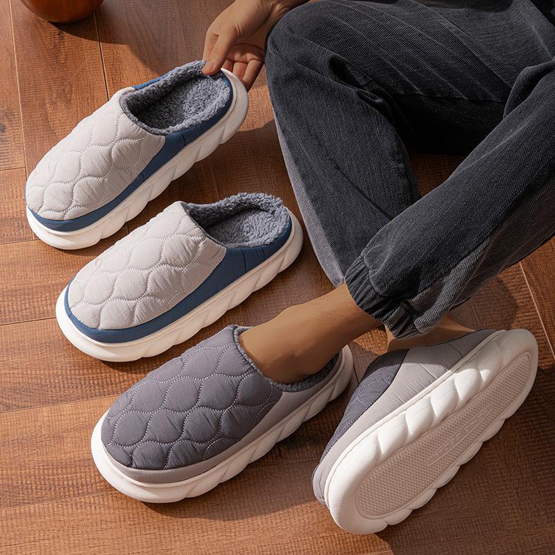 New autumn and winter indoor home waterproof and non-slip thick-soled down cloth cotton slippers winter