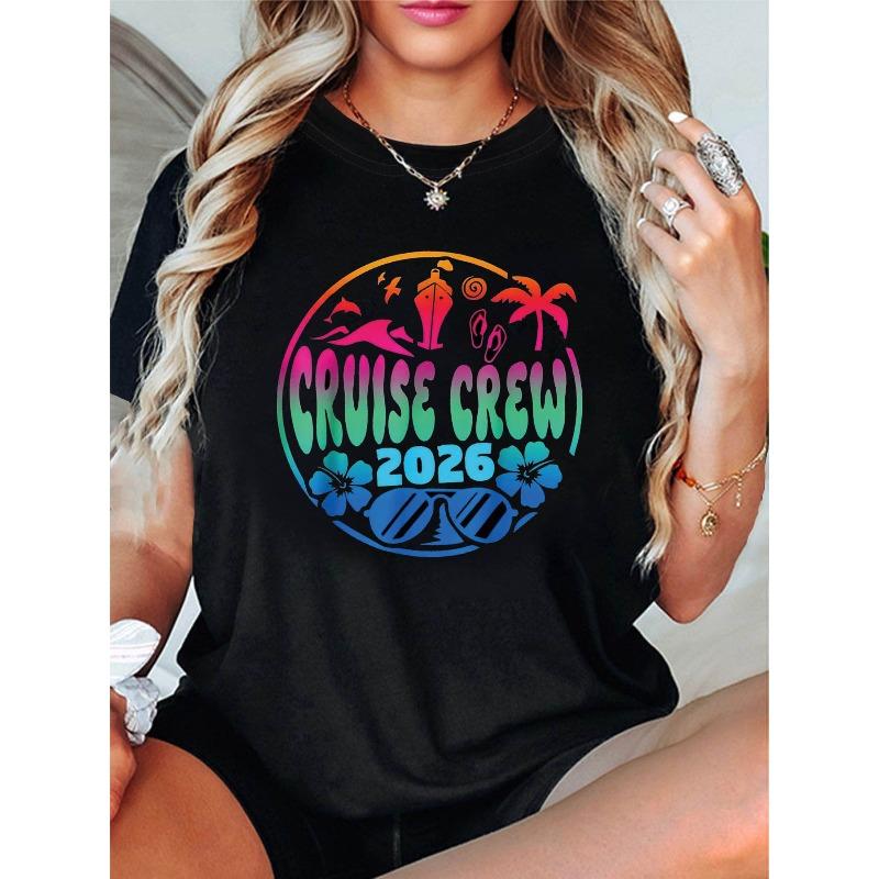 Women's CRUISE CREW Graphic T-Shirt Crew Neck Short Sleeve Casual Summer Top