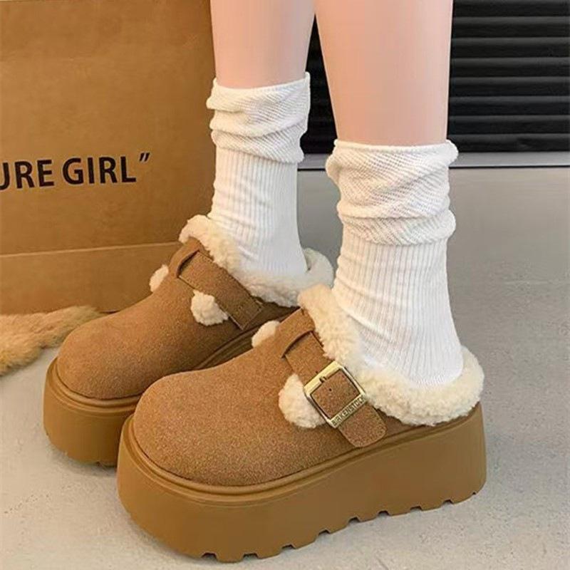 Thick-bottomed bag head, half slippers, outer wear, autumn and winter new lazy plush Birkenstock cotton mop