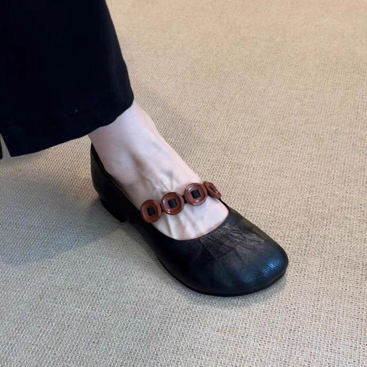 French retro Mary Jane shoes autumn new button thick heel with light mouth single shoes
