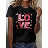 European Size Women'S White LOVE Print T-Shirt | Pink Heart and Red Letters, Short Sleeve Round Neck, Pink Bow Decoration