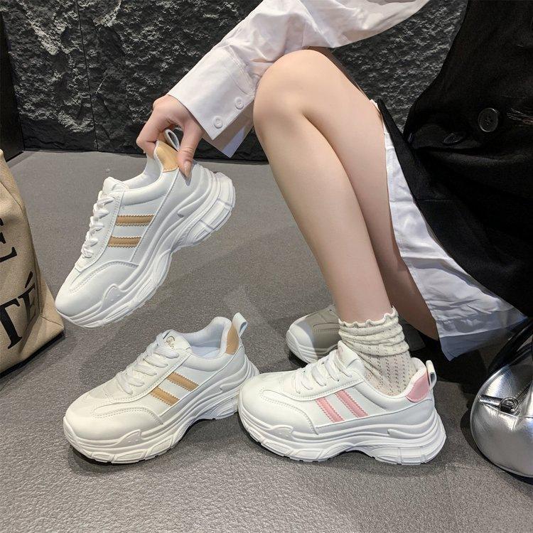 Leather platform dad shoes New autumn lightweight and breathable casual sports shoes