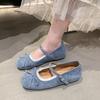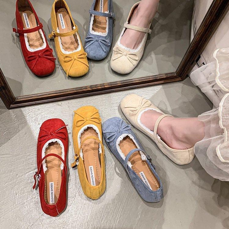 French fairy square head ballet shoes new autumn bow skirt single shoes soft-soled Mary Jane shoes