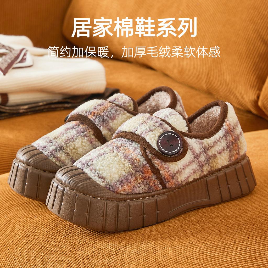 Retro plaid thick-soled cotton shoes, new winter outer wear non-slip plush warm home cotton slippers