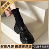 Black velvet autumn and winter British style thick-soled small leather shoes, warm cotton shoes size